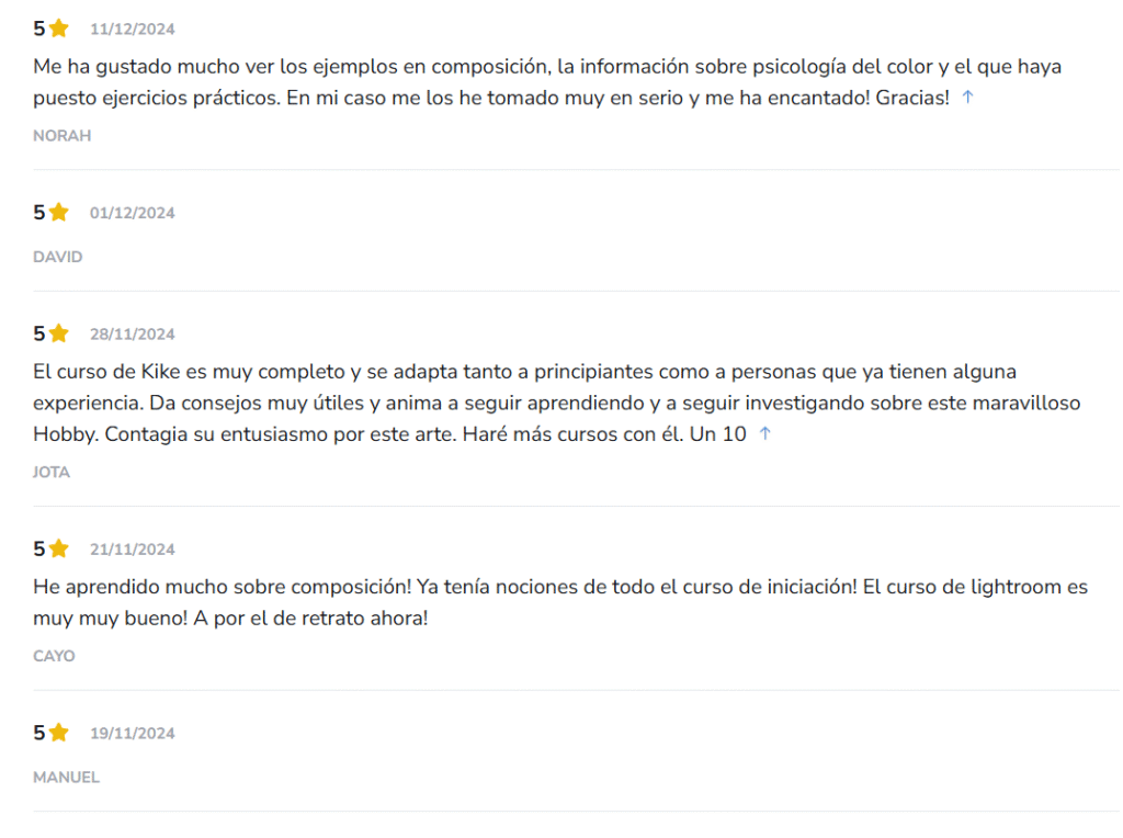 ➡️ Lee lo que los estudiantes han dicho sobre su experiencia real dentro del curso.